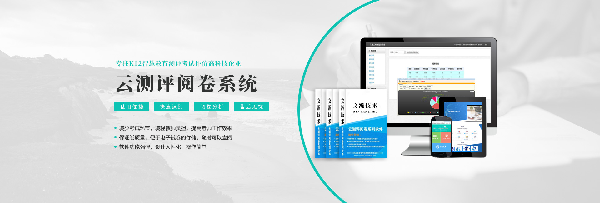 河北文瀚智考信息技術有限公司是一家專注教育的科技創新公司。本公司主營四大板塊產品:網上閱卷系統、光標閱讀機、答題卡和互動觸控液晶一體機。公司在數據處理產品領域(OMR)推出了一系列具有快捷,簡便,實用產品,···